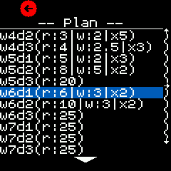 The format of the View menu is w{week}d{day}(r:{run mins}|w:{walk mins}|x{number of reps}).