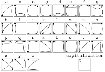 Swipe from corner to corner to enter characters, then press the button to submit the text to the calling app. To capitalize letters, complete your stroke in the top left corner.