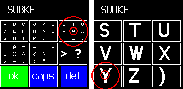 Press "shft" or "caps" to access alternative characters, including upper case letters, punctuation, and special characters. Pressing "shft" also reveals a cancel button if you would like to terminate input without saving.