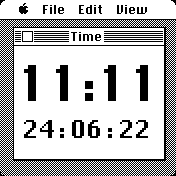 A clock inspired by Susan Kare's original 1984 Macintosh desktop design.