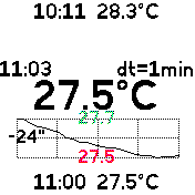 Reads temperature and pressure sensor. Shows current, maximal and minimal values since the start of the app. Also show a graph of the last 20 measures.