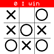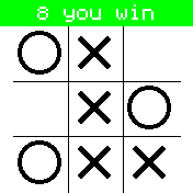 To start with the computer will play random moves and slowly increase its skill based on a set of logic rules. During your first few games the playing logic will apply a new logic rule after each time you win. Once you reach eight wins the banner area will turn green indicating that the computer is now playing at maximum strength. However it is not as easy as you think and if you make a mistake and loose a game your score goes back to zero. The more you play against a weaker algorithm the more likely you are to loose concentration.