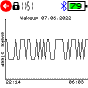 For each day of month (1..31) the ESS states are logged. An entry will be overwritten in the next month, e.g. an entry on the 4th May will overwrite an entry on the 4th April. On Bangle.js 1 only one day is logged due to low memory. The logs can be plotted from the settings menu: