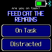 3. Thirty seconds after you enter the task into the app, your device will vibrate and ask you if you are on task, or if you got distracted.