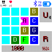 In Light theme with characters: Screenshot from the Banglejs 2 watch with the game in light theme