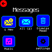 • Unread timer - When a new message is received the Messages app is opened. If there is no user input for this amount of time then the app will exit and return to the clock.