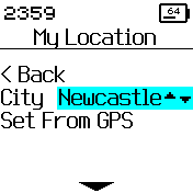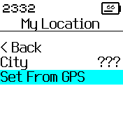 • When the City shows ??? it means the location has been set through the GPS